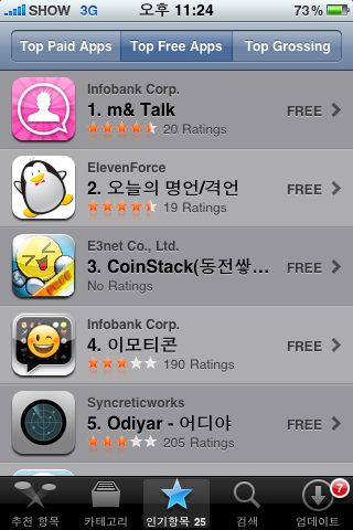 이러한 세계적인 추세에 맞춰 국내에서 가장 먼저 등장한 모바일 메신저는 당시 제가 개발에 참여하여 2010년 2월에 출시된 m&Talk이었습니다. 이미 Whatsapp이 국내에서 유통되고 있던 시점이었기 때문에, m&Talk이 Whatsapp을 이기기 위해서는 새로운 혁신이 필요했습니다. 그래서 그 때 선택했던 방법이 무료화 정책, 그리고 철저한 현지화였습니다. Whatsapp은 앱을 다운로드 받기 위해 $0.99를 지불해야 했지만, m&Talk은 이 부분을 무료로 만들었고 Whatsapp에서 지원하지 않았던 한글을 지원함으로써 단기간에 국내에서 큰 성장을 이루었습니다.