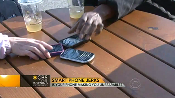 한달전쯤인가 CBS TV모닝쇼를 보다가 흥미로운 내용을 접했다. “스마트폰또라이가 되지 말자”(Don’t be a smartphone jerk)란 제목이었는데 상대방과 대화는 안하고 스마트폰만 들여다보는 요즘 세태 때문에 생긴 웃기는 풍속도 얘기였다. 재미있어서 아래처럼 가볍게 트윗했다.