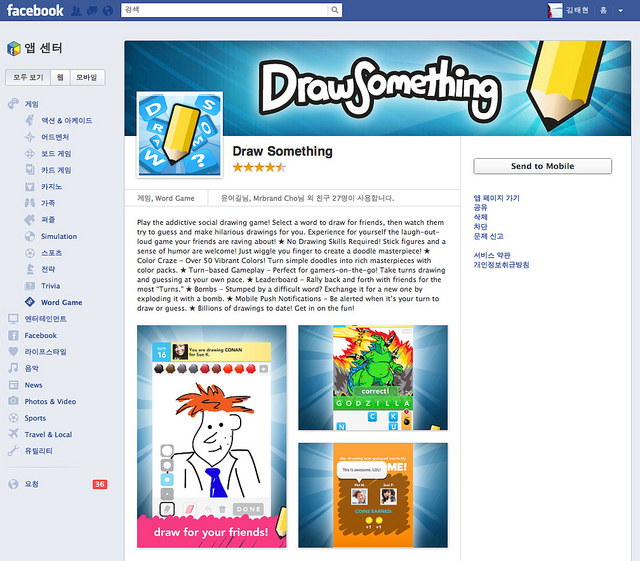 Draw Something의 경우에는 <Send to Mobile>이라는 액션이 있는데.. 클릭하면 모바일 알림창에