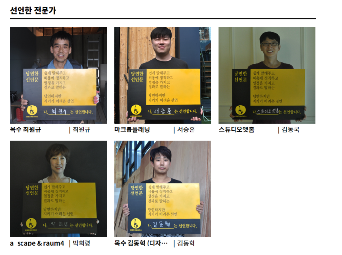 인테리어브라더스는 전문가과 함께하는 캠페인을 진행하고 있다. 고객들이 인테리어 시장에서 갖고있는 불신을 해소하기 위해서다. 전문가는 신뢰회복을 위한 선언문을 작성하고 전문성,  전문영역을 소개하는 콘텐츠를 올릴 수 있는 기회를 얻는다.