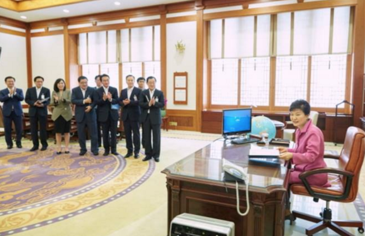 반면 청와대에서 대통령 개인비서의 자리는 어디일까 생각하다가 이 사진을 떠올렸다. 2015년 9월 박 대통령이 청년희망펀드 공약신탁에 가입할 당시 공개된 사진이다. 가입신청서에 사인하는 대통령을 청와대 수석비서관들이 왜 저렇게 멀리 떨어져서 박수를 치고 있을까 보면서 의아했었다. 책상이 너무 깨끗하고 집무실이 너무 넓다. 너무 휭해서 일하고 싶은 생각이 안들 것 같은 분위기다.