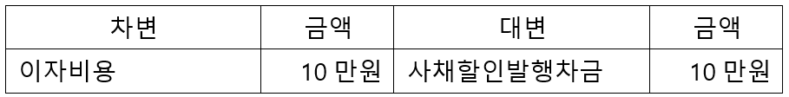 전환사채는 유효이자율법을 사용하여 상각한다. 매기 이자 비용과 함께 부채 요소의 상각을 처리한다. 당기 발생한 이자비용이 10만원이라면, 다음과 같이 회계처리 될 것이다.