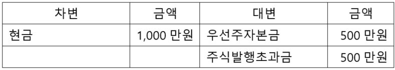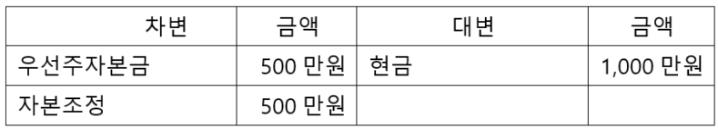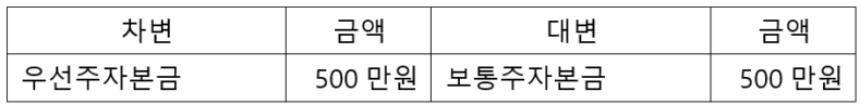 – 전환일 회계처리(액면가 500만원의 보통주로 전환)