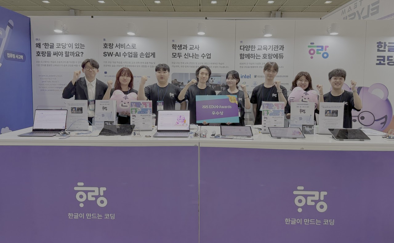 전시 마지막 날에는 유도희 대표가 ‘정규교과부터 학교자율시간까지, 한글코딩으로 쉬운 AI/SW 교육 혁신 가이드’를 주제로 교사 대상 연수를 진행했다. 또한 부대행사로 열린 ‘2025 에듀플러스 어워즈’에서 ‘호랑’ 서비스가 우수상을 수상하며 현장 적용성과 교육적 가치를 인정받았다.