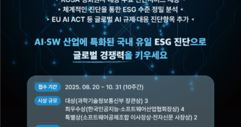한국인공지능·소프트웨어산업협회(KOSA, 회장 조준희)가 8월 20일부터 오는 10월 31일까지 '제2회 AI·SW기업 ESG경영 대상' 접수를 시작한다고 밝혔다. 이번 대상은 ESG(환경·사회·지배구조) 경영 성과가 우수한 인공지능(AI)·소프트웨어(SW)기업을 발굴하고 우수사례를 확산하기 위해 마련됐다. KOSA는 지난해 국내 최초로 AI·SW 산업에 특화된 ESG 경영 진단 서비스를 론칭하고, 「제1회 SW기업 ESG 경영 대상」 을 개최했다. 올해는 시상명에 AI를 추가하고, EU AI ACT 등 글로벌 AI 규제에 대응하기 위한 진단항목을 추가해 진단 범위를 확장했다. 접수 대상은 10월 31일까지 협회가 주관하는 'AI·SW기업 ESG경영 진단'을 받은 기업 중 E(환경), S(사회), G(지배구조) 분야 경영 성과가 우수한 기업이다. 접수기간은 8월 20일부터 10월 31일까지 10주간이며, 진단결과와 심의위원회 심사점수를 합산해 평가한다. 행사는 한국인공지능·소프트웨어산업협회 산하 ESG위원회가 주최·주관하고, 과학기술정보통신부와 소프트웨어공제조합, 전자신문이 후원한다. 시상식은 12월 17일 '2025 KOSA 회원의밤' 행사에서 개최된다. 이번 대상은 총 9개 부문으로, ▲대상(과학기술정보통신부 장관상) 3개, ▲최우수상(한국인공지능·소프트웨어산업협회장상) 4개, ▲특별상(소프트웨어공제조합 이사장상, 전자신문 사장상) 2개를 시상한다. 특히 올해는 과학기술정보통신부 장관상이 기존 1개에서 3개로 확대되어 더 많은 기업에게 인정받을 기회가 주어질 것으로 예상된다. KOSA가 운영하는 「AI·SW기업 ESG경영 진단」 서비스는 국내 유일의 AI·SW 산업 특화 ESG 진단으로, 데이터 관리, AI 신뢰성 및 윤리 준수, 디지털 접근성 등 업계 특화 진단항목과 국내외 1,000여개 ESG 이니셔티브 데이터를 반영했다. 생성형 AI기술을 도입해 진단요소별 평가 결과와 중요성 이슈 분석 등 맞춤형 인사이트를 제공하며, 체계적인 진단을 통해 ESG 수준을 정밀 분석하고 구체적인 개선 방안을 제시한다. 또한 동일 산업군과의 비교 분석과 대시보드를 통한 현황 관리 기능을 원스톱으로 지원한다. 이번 진단서비스는 협회 모든 정회원사에게 무료로 제공되며, 10월 31일까지 진단에 참여하는 모든 기업은 자동으로 시상 심사 대상이 된다. 조준희 KOSA 회장은 "올해는 글로벌 AI 규제에 대응할 수 있도록 AI기업들에 특화된 진단항목을 추가하고, 무료 진단서비스 제공으로 더 많은 기업들이 ESG 경영 역량을 강화할 수 있는 기회를 마련했다"며, "AI·SW 기업들의 적극적인 참여를 통해 우리 산업의 ESG 경영 우수사례를 발굴하고 확산시키길 바란다"고 말했다. 관련 기사 더보기 https://www.venturesquare.net/998303