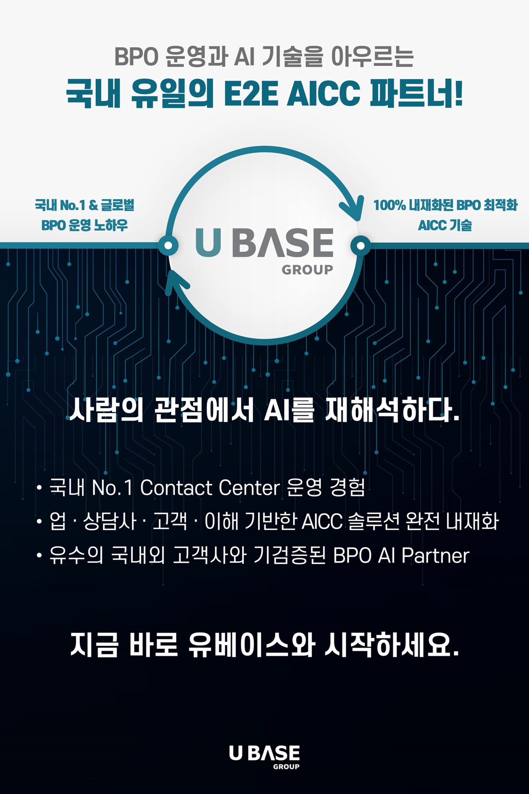 BPO(Business Process Outsourcing) 기업 유베이스 그룹(대표 목진원)은 8월 20일부터 22일까지 서울 코엑스에서 열리는 ‘스마트 워크 & 컨택센터 엑스포 2025’(SWCC EXPO 2025)에 참가해 자사의 통합 AI 컨택센터(AICC) 솔루션을 선보인다고 밝혔다.