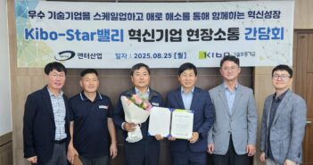 기술보증기금(이사장 김종호, 이하 ‘기보’)은 25일(월) 호남지역에서 Kibo-Star밸리기업으로 선정된 ㈜엔터산업(대표이사 박종현)을 찾아 지원성과를 점검하고 현장의 목소리를 들었다고 밝혔다. 이번 방문은 Kibo-Star밸리기업의 현황과 애로사항을 직접 확인하고, 스케일업 촉진을 위한 추가 협력 방안을 논의하기 위해 마련됐다. 현장에는 기보 호남지역본부장과 광주지점장, ㈜엔터산업 대표이사 및 임직원이 함께해 생산 공정을 둘러보고 다양한 의견을 교환했다. 2001년 7월에 설립된 ㈜엔터산업은 자동차 시트용 프레임 등 자동차용 금속부품 전문기업으로, 독자 기술을 적용한 마운팅 브라켓 조립장치를 상용화해 생산성 향상과 공급 확대를 이루며 안정적인 성장을 이어가고 있다. Kibo-Star밸리는 우수한 기술력과 성장 잠재력을 갖춘 혁신기업을 대상으로, 창업연한과 성장단계에 맞춰 ▲사전 보증한도 부여(단계별 한도 30억원에서 100억원 이내) ▲보증비율 우대(95%, 3년간) ▲보증료 감면(0.5%p, 3년간) 등을 제공하는 기보의 핵심 스케일업 지원 프로그램이다. 박종현 ㈜엔터산업 대표이사는 “기보의 실질적인 지원 덕분에 어려운 경영환경 속에서도 영업망을 확대하고, 기술 경쟁력을 강화할 수 있었다”고 밝혔다. 이장훈 기보 호남지역본부장은 “최근 관세 부담 등 어려운 대외 여건 속에서도, Kibo-Star밸리기업의 경쟁력과 성과를 확인할 수 있었다”며, “기보는 앞으로도 지역 혁신기업이 흔들림 없이 성장하도록 다각적인 지원을 이어나가겠다”고 밝혔다. 관련 기사 더보기 https://www.venturesquare.net/1000127
