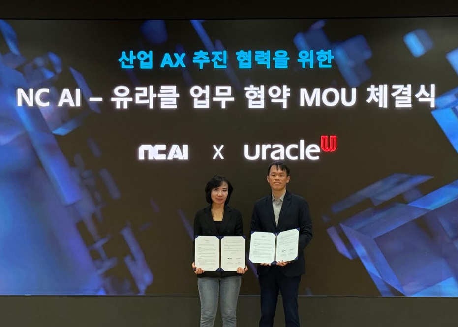 NC AI와 모바일·플랫폼 전문기업 유라클은 25일 판교 NC AI 본사에서 AI 기반 혁신 서비스 확산 및 기업 시장 공략을 위한 전략적 업무협약(MOU)을 체결했다고 밝혔다. 양사는 이번 협약을 통해 NC AI의 AI 플랫폼 ‘VARCO’와 유라클의 AI플랫폼 ‘아테나’를 결합한 공동 프로젝트를 추진, AI 기술과 모바일 플랫폼을 접목한 혁신 서비스 개발 및 상용화에 협력할 계획이다.