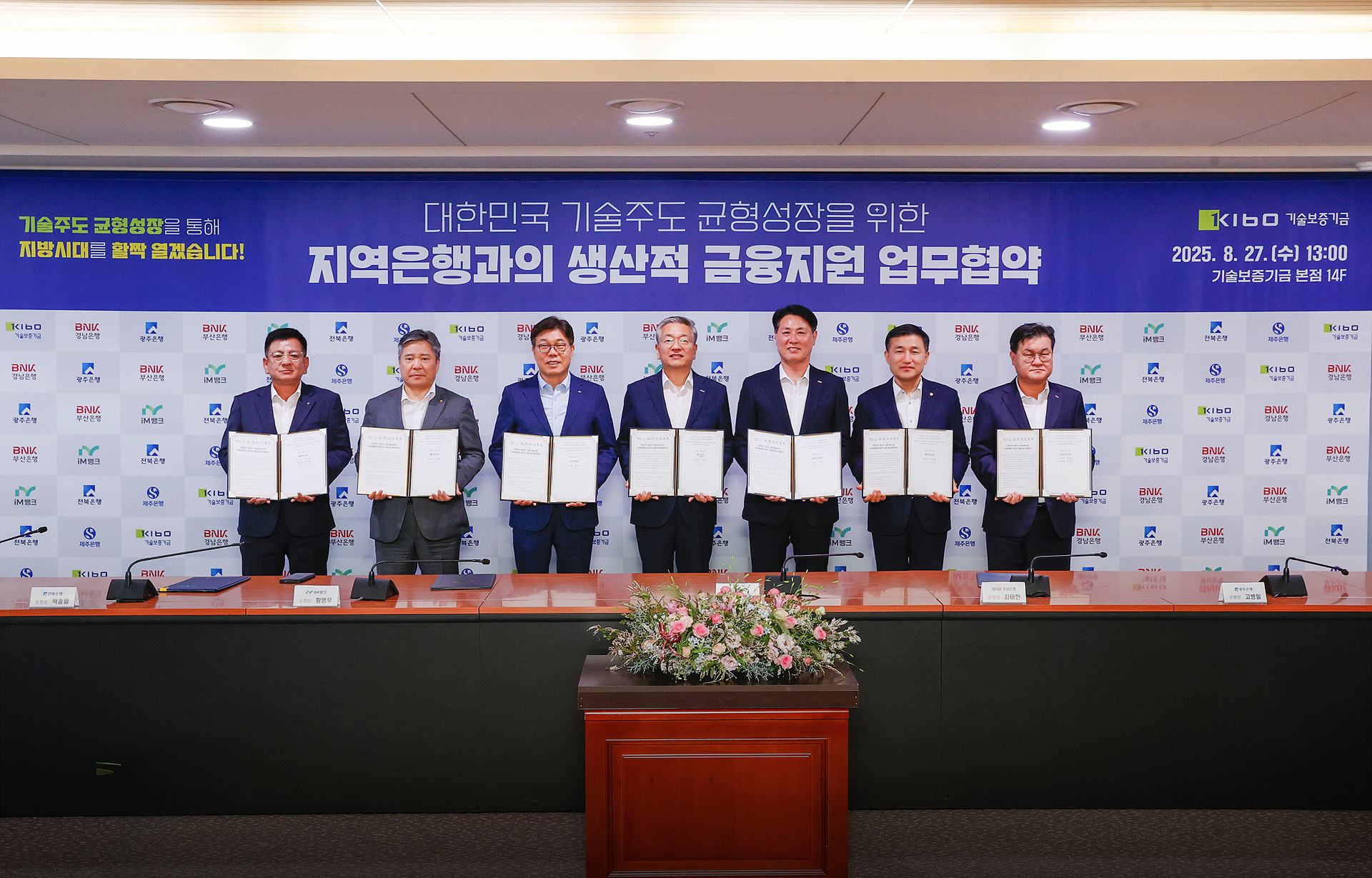 This agreement involved seven institutions: Kibo, Gyeongnam Bank, Gwangju Bank, Busan Bank, IM Bank, Jeonbuk Bank, and Jeju Bank. The agreement aims to expand productive financial support to address the crisis of regional extinction and create new growth engines for the local economy.