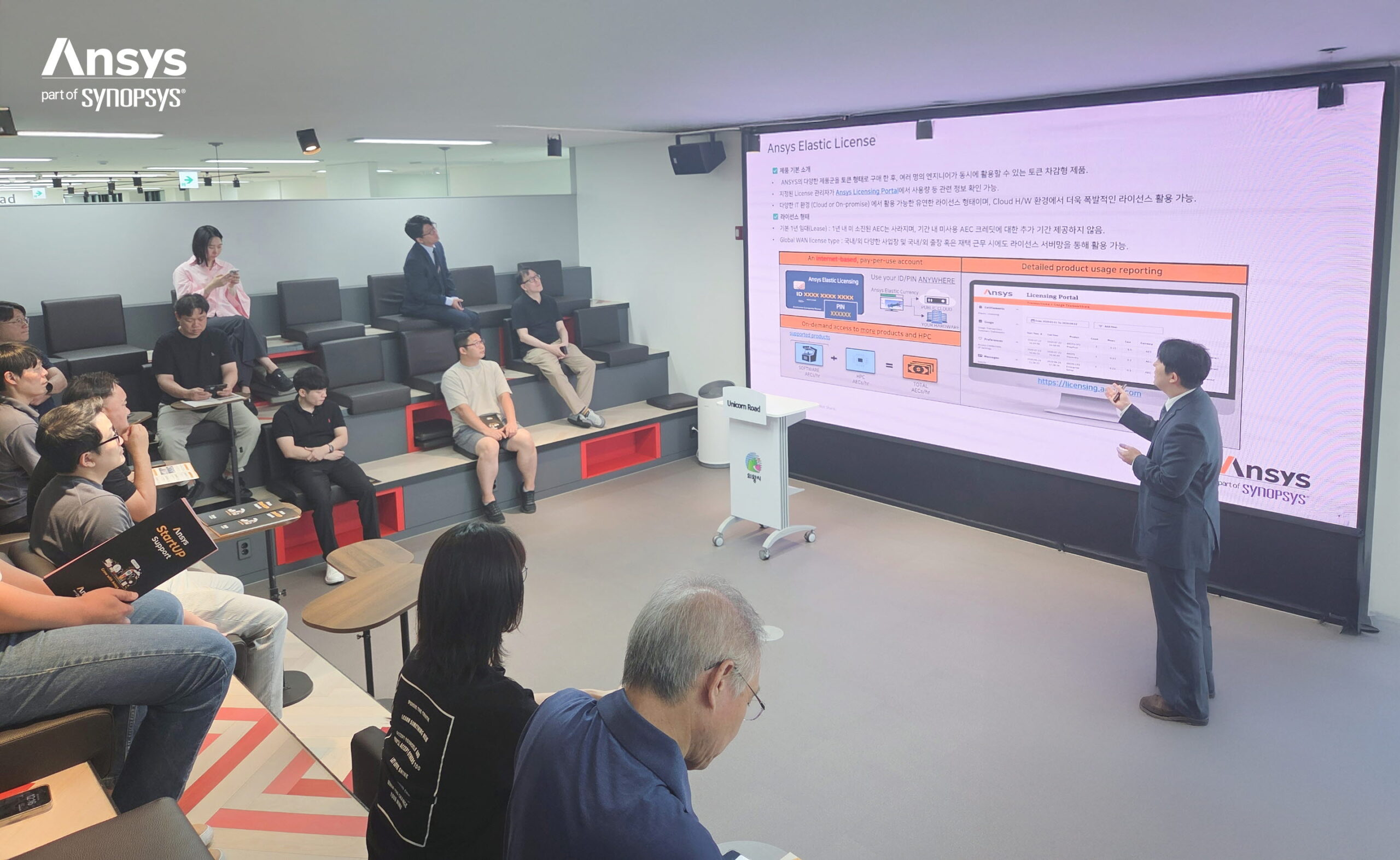 This seminar was co-hosted by ANSYS Korea and Unicorn Road, a startup support organization in Uiwang City, and was planned with the goal of strengthening the technological competitiveness of startups located on Unicorn Road and expanding their participation in global programs.