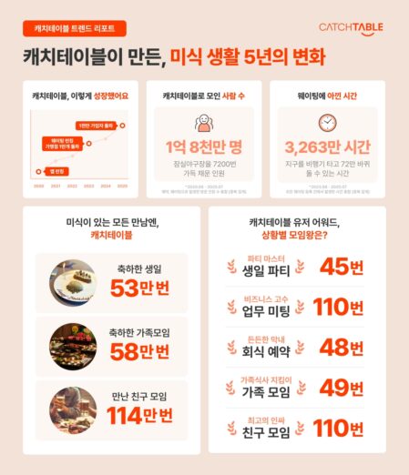 캐치테이블, 5년간 누적 데이터 공개.. 예약·웨이팅·결제 등 외식 올인원 플랫폼으로 성장