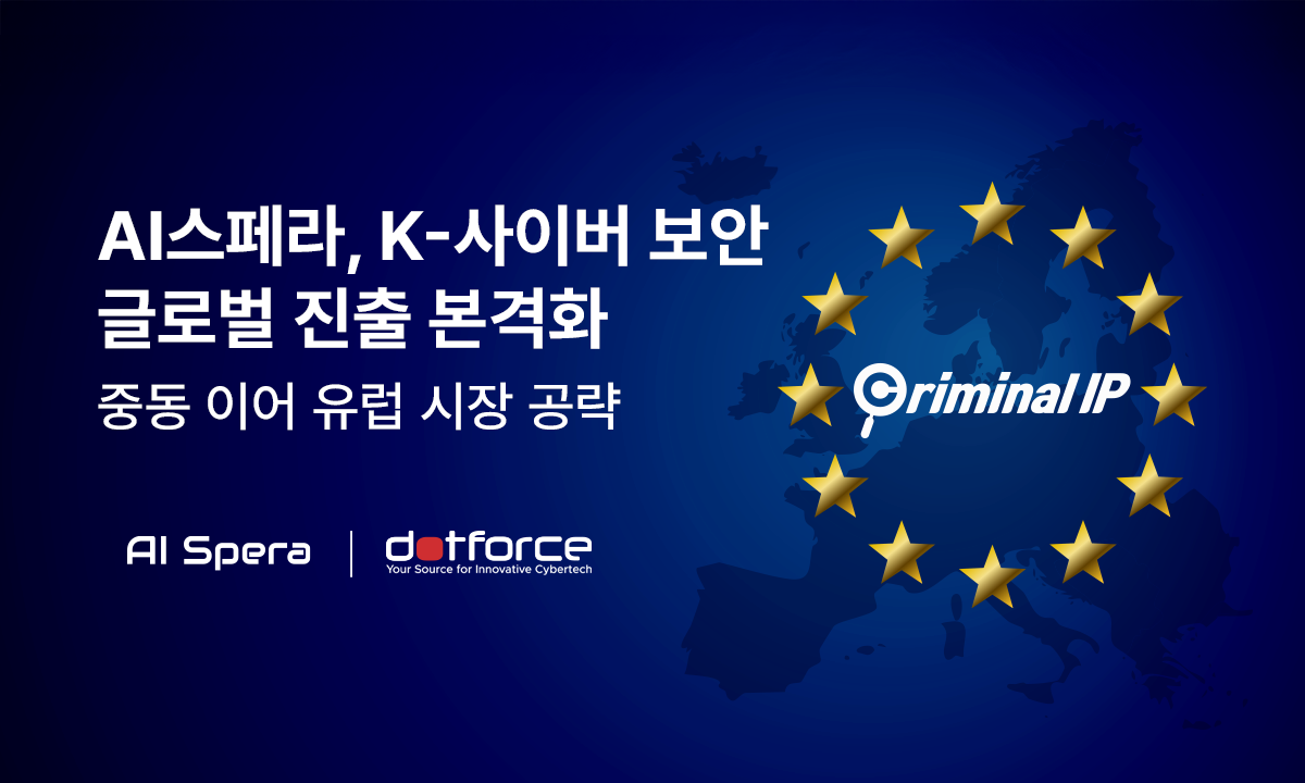 AI 기반 사이버 보안 기업 AI스페라(AI SPERA, 대표 강병탁)는 유럽 보안 솔루션 유통사 닷포스(DotForce)와 파트너십을 체결하고, 자사의 ASM(공격표면관리) 및 TI(위협 인텔리전스) 솔루션 ‘크리미널 IP(Criminal IP)’를 유럽 시장에 공급한다고 2일 밝혔다.
