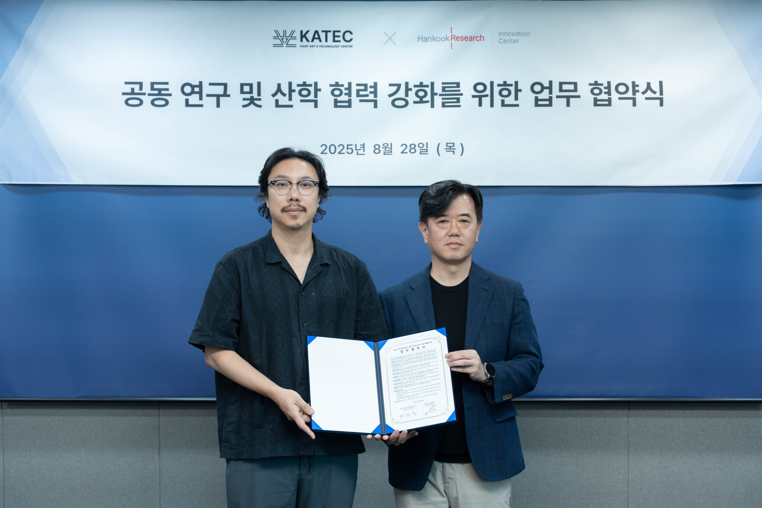 종합 시장조사 기업 ㈜한국리서치는 지난 8월 28일 카이스트 아트 앤 테크놀로지 센터(KAIST Art & Technology Center, 이하 KATEC)와 ‘공동 연구 및 산학 협력 강화를 위한 업무협약(MOU)’을 체결했다고 밝혔다.