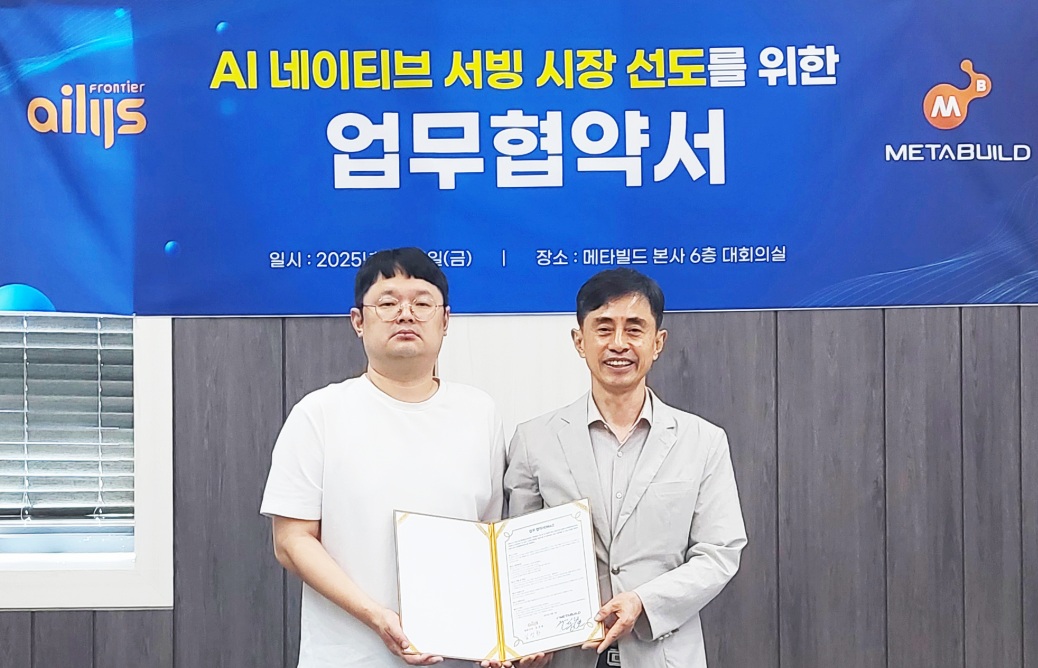 데이터 AI 전문기업 메타빌드㈜(대표 조풍연)와 AI·자연어처리 전문기업 아일리스프런티어㈜(대표 김성한)는 지난 9월 5일, AI 네이티브 서빙 시장 선도 및 글로벌 경쟁력 강화를 위한 전략적 업무협약(MOU)을 체결했다고 밝혔다.