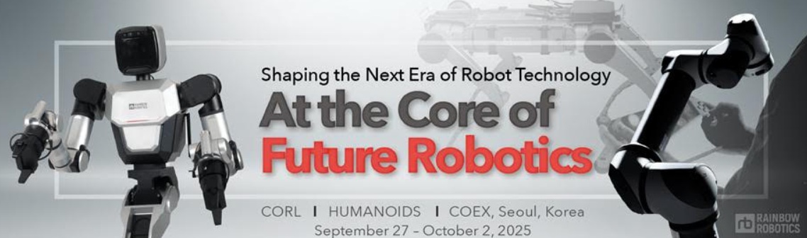 로봇 플랫폼 전문기업 레인보우로보틱스(대표 이정호)가 9월 27일부터 10월 2일까지 서울 코엑스에서 연이어 개최되는 로봇공학 학술대회 ‘CoRL 2025’와 ‘Humanoids 2025’에 참가해 자사의 최신 로봇 기술을 공개한다고 15일 밝혔다.