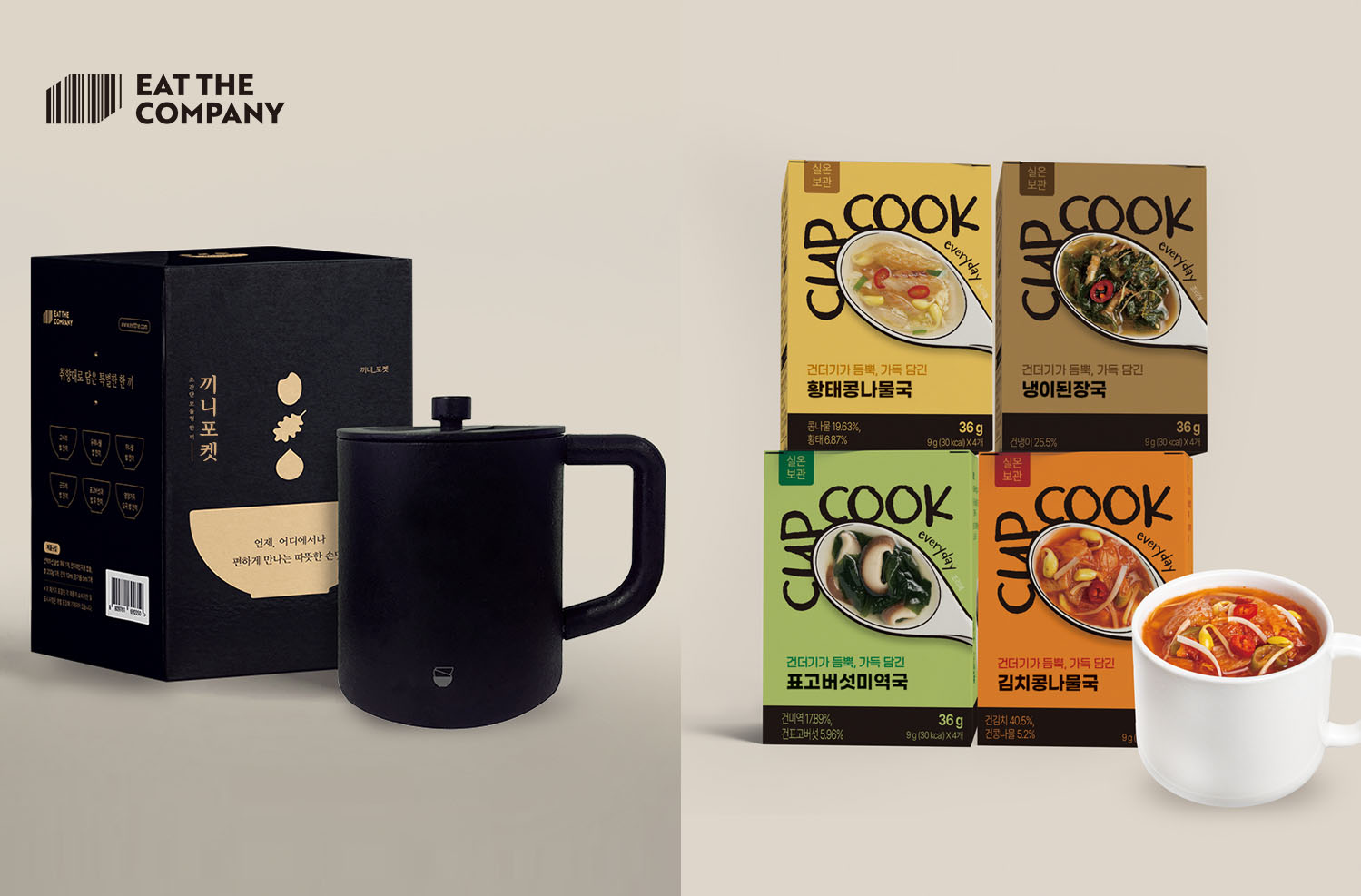 더불어 즉석국 브랜드 ‘컵쿡에브리데이’로 밥과 국을 아우르는 완전한 한 끼 솔루션을 제안하고 있다. 컵쿡에브리데이는 김치국, 미역국, 된장국, 황태콩나물국 등 한국 전통 손맛과 국문화를 담아내면서도, 간편 조리와 휴대성을 강화해 로컬푸드 경험을 일상적으로 확산시키는 역할을 하고 있다.
