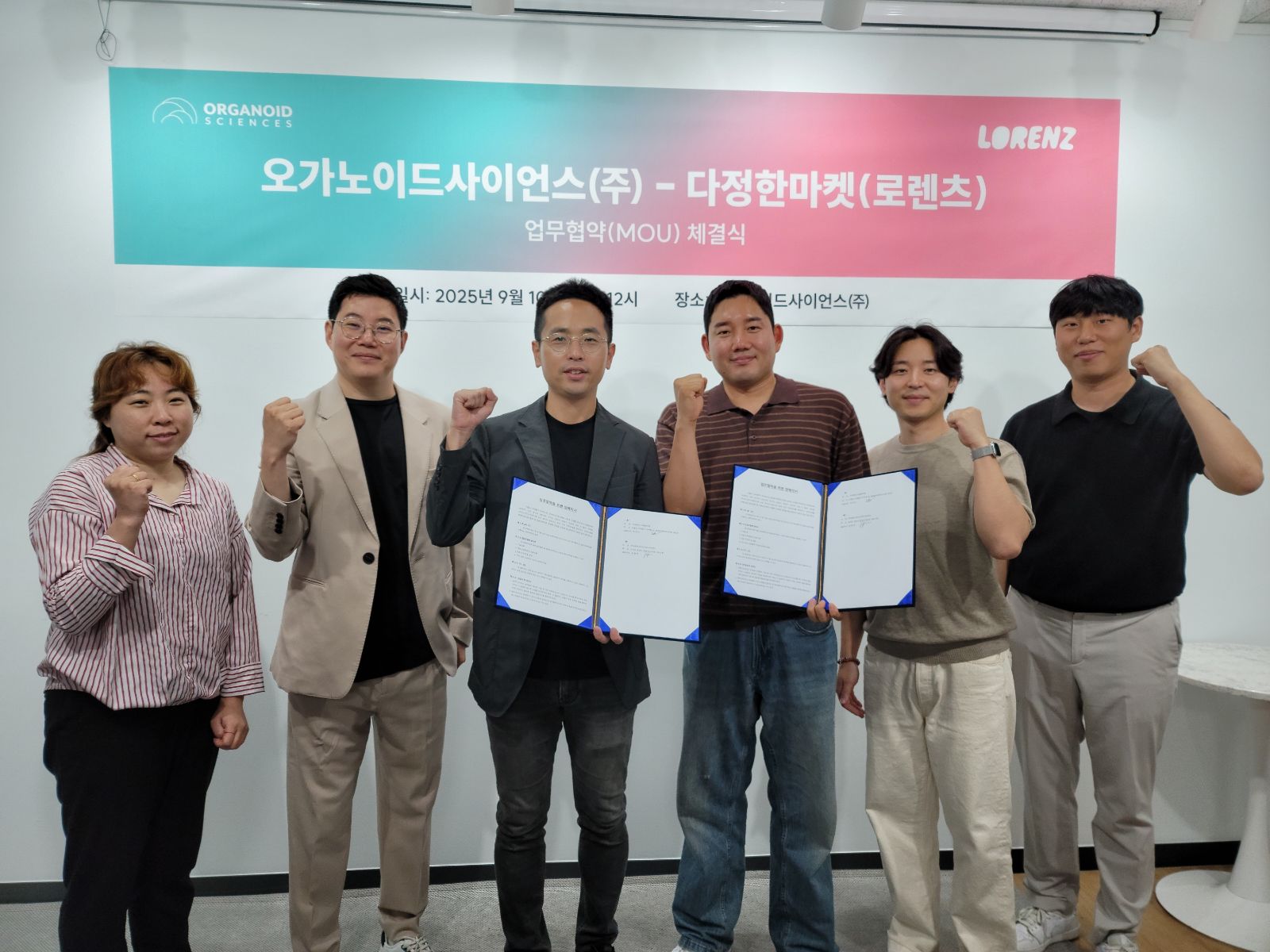 오가노이드사이언스㈜(대표 유종만)가 반려동물 간식 브랜드 ‘로렌츠’를 운영하는 주식회사 다정한마켓과 지난 10일 공동사업 추진을 위한 업무협약(MOU)을 체결했다고 밝혔다.
