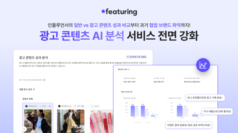 Jang Ji-hoon, CEO of Featuring, said, “Advertising content analysis is a tool that can discover various success stories, such as influencers who have high advertising effectiveness even without a large number of followers and influencers who elicit positive responses based on their fandom.” He added, “We will continue to actively support our clients’ practical growth with Featuring’s differentiated social data insights.”