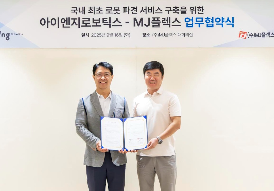 HR specialist MJ Flex Co., Ltd. and intelligent robot development company ING Robotics Co., Ltd. announced that they have signed a memorandum of understanding (MOU) to establish Korea's first robot dispatch service model.
