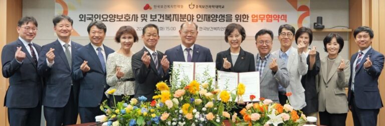 한국보건복지인재원(원장 배금주, 이하 ‘인재원’)은 충북보건과학대학교(총장 박용석)와 9월 23일(화) 외국인 요양보호사 및 보건복지 분야 인재 양성을 위한 업무협약(MOU)을 체결했다고 밝혔다. 이번 협약은 고령화 심화와 함께 증가하는 보건복지 서비스 수요에 대응하고, 전문성과 실무역량을 갖춘 인재를 안정적으로 양성하기 위한 목적으로 추진됐다. 특히, 외국인 요양보호사 대상의 체계적인 교육 기반 마련을 중점 과제로 하고 있다. 양 기관은 이번 협약을 통해 ▲외국인 요양보호사 및 보건복지 분야 인재 양성을 위한 조사·연구 협력 ▲전문인력 양성을 위한 공동 프로젝트 추진 ▲학술·교육 교류 활성화 ▲교육 인프라의 공동 활용 등 다양한 분야에서 상호 협력할 계획이다. 이번 협약은 외국인 요양보호사를 포함한 보건복지 전문 인력의 체계적 양성과 보건복지 서비스의 질적 향상 기반을 마련했다는 점에서 의미를 갖는다. 배금주 한국보건복지인재원 원장은 “이번 협약은 외국인 요양보호사의 안정적인 정착과 양질의 서비스 제공을 위한 교육 체계를 마련하는 데 기여할 것”이라며, “국민이 신뢰할 수 있는 보건복지 서비스를 실현하는 데 기반이 될 것으로 기대한다”고 밝혔다. 관련 기사 더보기 https://www.venturesquare.net/999288
