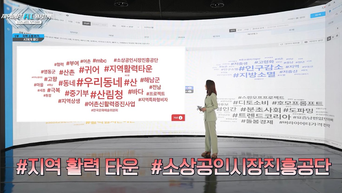 MBC's regional program, "Local Survival AI Project: Our Hometown, Please!", is an experimental project that explores how humans and artificial intelligence (AI) can work together to find solutions to the crisis of regional extinction. The project began with the question: Can AI truly diagnose and find solutions to overcome the challenges of low birth rates, aging populations, population decline in regional cities, and job losses?