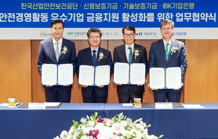 협약에 따라 안전보건공단은 안전경영활동 우수기업을 발굴·추천하고, 기보와 신보는 해당 기업에 ▲맞춤형 보증 ▲기술이전 및 사업화 ▲경영 컨설팅 등 금융·비금융 전반에 걸친 종합 지원을 제공한다. 기업은행은 ▲보증부 대출 ▲대출금리 우대 ▲경영 컨설팅 등 자금지원과 함께 산업안전 강화를 위한 활동에도 적극 참여할 계획이다.