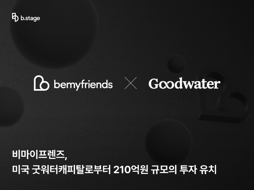 グローバルファンダムビジネスソリューション「ビステージ(b.stage)」を運営するビーマイフレンズ(共同代表ソ・ウソク・イ・ギヨン)は、米国シリコンバレーベースのベンチャーキャピタルグッドウォーターキャピタル(Goodwater Capital)から約210億ウォン規模の投資を誘致したと22日明らかにした。