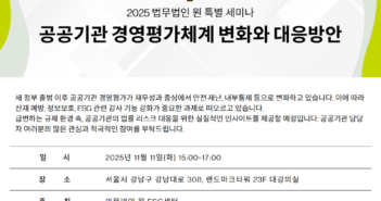 법무법인 원(대표변호사 윤기원, 이유정) ESG센터(공동센터장 오지헌, 이태경)가 오는 11월 11일 오후 3시, 서울 강남대로 랜드마크타워 23층 강의장에서 ‘공공기관 경영평가체계 변화와 대응방안’을 주제로 특별세미나를 개최한다. 이번 세미나는 최근 개편된 공공기관 경영평가 기준에 대응하기 위한 실무적 전략을 제공하고, 내년도 평가를 앞둔 기관들이 효과적으로 준비할 수 있도록 심층적인 정보를 제공하는 데 목적이 있다. 세미나 종료 후에는 사전 신청 기관을 대상으로 전문가와의 1:1 맞춤형 상담도 진행된다. 세미나는 강금실 변호사(법무법인 원·제55대 법무부장관)의 축사를 시작으로 진행된다. 첫 번째 세션에서는 이재혁 교수(고려대 경영학과, 국제ESG협회 회장)가 ‘지속가능성 평가방법과 중대성 이슈’를 주제로 발표하며, 두 번째 세션에서는 최현선 교수(명지대 행정학과, 국정기획위원회 위원 역임)가 ‘새 정부 공공기관 거버넌스: 정책 및 평가방향’을 다룬다. 이어 법무법인 원 인사노무팀의 강서영 변호사가 ‘노동법 관점 대응방안’을, ESG센터의 이태경 공동센터장이 ‘내부통제 관점 대응방안’을 제시한다. 법무법인 원 ESG센터는 공공기관과 기업을 대상으로 ESG 정보 공시 자문, 리스크 검토, 법규 준수, 지배구조 개선, 내부통제 체계 구축, ESG 관련 교육 등 전문적인 솔루션을 제공하고 있다. ESG센터는 2021년 출범 이후 국내 상장기업 공시 자문, 공기업 임직원 고충 처리, 지속가능경영보고서 리스크 분석, ESG 경영 교육 프로그램 개발 등 다양한 ESG 관련 컨설팅을 수행하며 전문성을 인정받고 있다. 관련 기사 더 보기 https://www.venturesquare.net/1010171