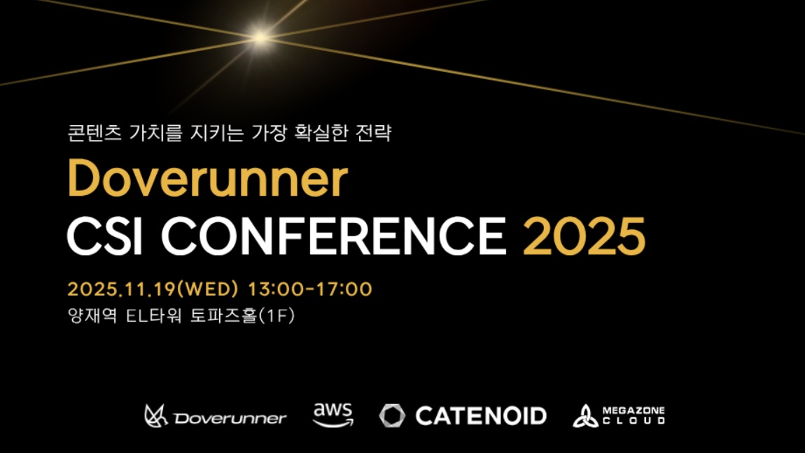 ドブランナー(Doverunner、旧インカエントワークス)は来る11月19日、ソウルヤンジェELタワートパーズホールで「Doverunner CSI Conference 2025」を開催すると28日明らかにした。今回のカンファレンスで「CSI」はContent Strategy Insightを意味し、コンテンツセキュリティだけでなく、クラウド、コンテンツ配信ネットワーク(CDN)、データ、プラットフォーム運用まで産業全体を網羅する戦略的観点を扱う。