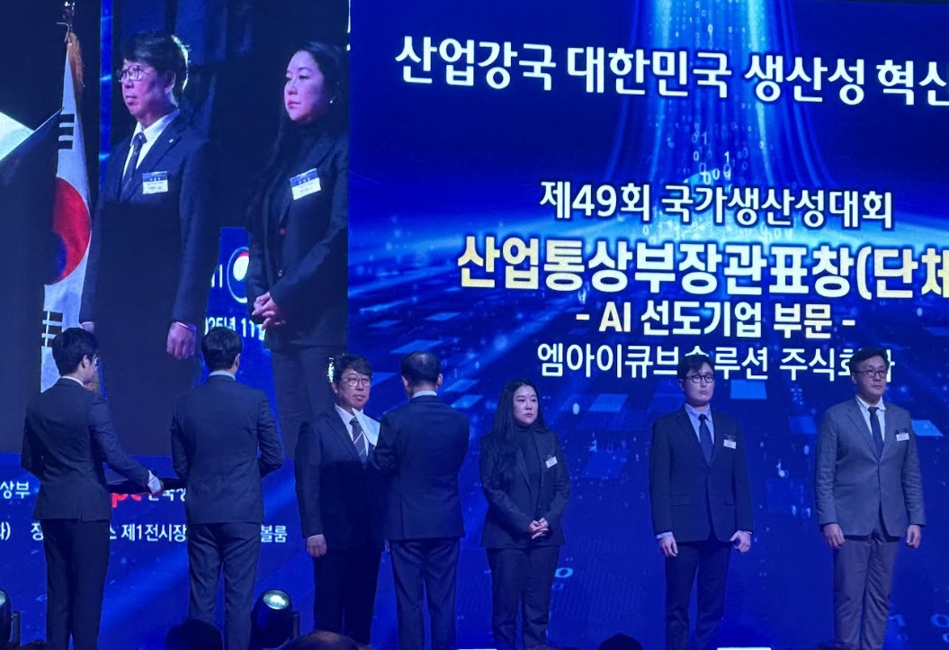 엠아이큐브솔루션(대표 박문원, 조영택)이 ‘2025년 국가생산성대상’ 특별상 AI 선도기업 부문에서 산업통상부 장관 표창을 받았다. 국가생산성대상은 생산성 향상 활동을 통해 국가 경제 발전에 기여한 기업과 단체를 대상으로 수여되는 정부포상으로, 시상식은 지난 4일 경기도 고양시 킨텍스에서 열린 ‘제49회 국가생산성대회’에서 진행됐다.