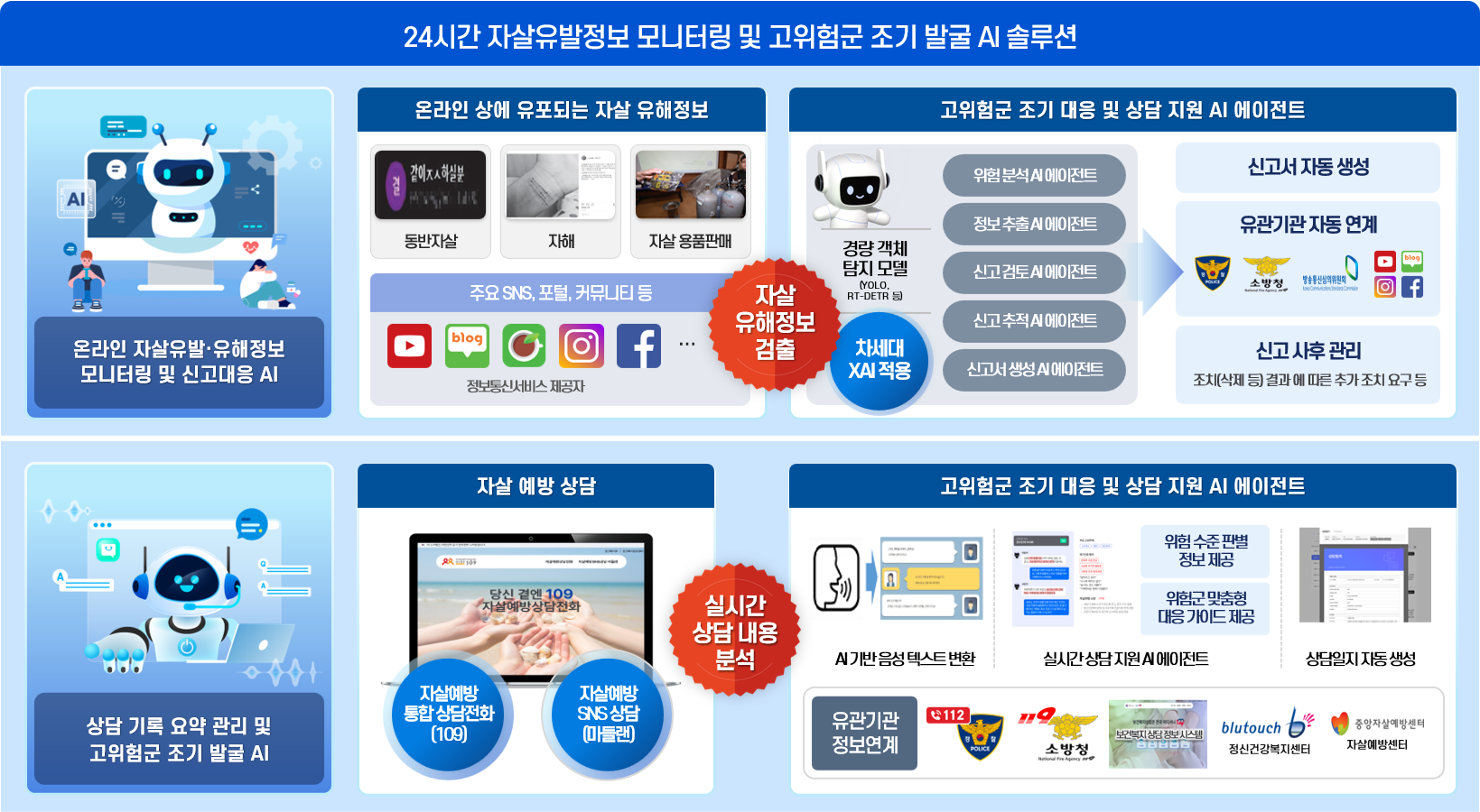 AI 솔루션에는 ▲문맥 단위 위험 신호 판단이 가능한 ‘맥락 데이터(Contextual Data)’ 기술 ▲텍스트, 이미지 등 다양한 데이터를 통합 분석하는 ‘멀티모달(Multi-Modal)’ 기술 ▲기능별 역할이 구분된 ‘멀티 에이전트(Multi-Agent)’ 아키텍처가 적용된다. 이를 통해 위험 신호 탐지 정확도와 대응 효율을 높이는 것이 목표다.