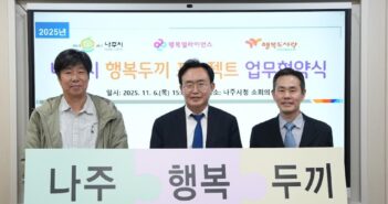 행복얼라이언스(사무국 행복나래㈜)가 6일 나주시청에서 나주시와 ‘행복두끼 프로젝트’ 추진을 위한 업무협약(MOU)을 체결했다. 이번 협약으로 행복두끼 프로젝트에 참여하는 지방정부는 총 144곳으로 확대됐다. ‘행복두끼 프로젝트’는 아동 결식 문제를 민관 협력으로 해결하기 위해 2020년부터 행복얼라이언스가 진행해 온 사회공헌 사업이다. 복지 사각지대에 놓인 결식우려아동을 발굴해 식사 지원과 후속 관리까지 이어지는 통합 지원 체계를 구축하며, 전국 단위 사회안전망을 강화하고 있다. 이번 협약을 통해 나주시가 구례군, 함평군, 무안군에 이어 전남 지역의 네 번째 협력 지자체로 합류했다. 나주시는 관내 결식우려아동 40명에게 총 1만 400식의 ‘행복도시락’을 제공하며, 도시락 지원이 종료된 이후에는 대상 아동을 급식지원 체계에 편입해 지속적인 돌봄을 이어갈 예정이다. 협약식에는 윤병태 나주시장, 행복나래㈜ 조민영 본부장, 행복도시락사회적협동조합 최준 사무국장이 참석했다. 세 기관은 결식우려아동 지원 확대를 위한 적극적인 협력을 약속했다. 프로젝트는 지방정부, 기업, 사회적기업의 역할 분담을 기반으로 체계적으로 운영된다. 나주시는 아동 발굴과 관리, 행복얼라이언스 멤버 기업은 도시락 지원 예산 기부, 행복도시락사회적협동조합은 도시락 제조 및 배송을 담당한다. 행복얼라이언스는 전체 운영을 총괄하며 파트너 간 협력을 조정하고 사업 효과를 극대화할 방침이다. 조민영 행복얼라이언스 사무국(행복나래㈜) 본부장은 “전남 지역에서 결식우려아동 지원이 확대되는 것은 큰 의미가 있다”며, “행복얼라이언스는 앞으로도 지역사회와 협력해 아이들의 건강한 성장을 지원하는 사회공헌 활동을 전국적으로 이어가겠다”고 말했다. 관련 기사 더 보기 https://www.venturesquare.net/967544