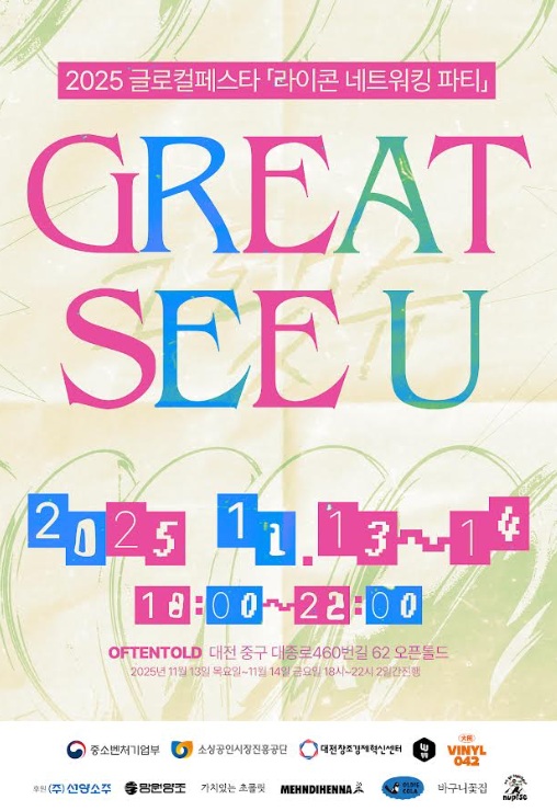 대전창조경제혁신센터(대표 박대희, 이하 대전혁신센터)는 오는 13일부터 14일까지 대전 중구 오픈톨드에서 ‘2025 글로컬페스타 연계 라이콘 네트워킹 파티(Great SEE U: 그랬슈)’를 개최한다고 밝혔다.