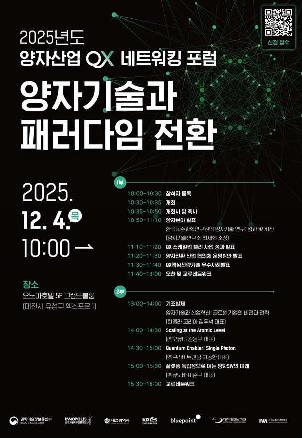 행사는 1부와 2부로 나뉘어 진행된다. 1부에서는 정부의 양자 산업 정책 방향과 ‘양자컴퓨팅 QX 스케일업밸리’ 사업의 주요 성과가 발표된다. 이어지는 2부에서는 양자 기술을 산업으로 연결하기 위한 구체적 비즈니스 전략이 공유된다.