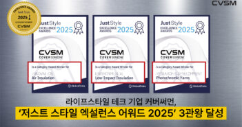 라이프스타일 테크 기업 ㈜커버써먼(CVSM, 대표 이재호)이 영국 섬유패션 전문 매체 ‘저스트 스타일’이 주관하는 ‘저스트 스타일 엑설런스 어워드 2025(Just Style Excellence Awards 2025)’에서 3개 부문을 수상했다고 밝혔다.