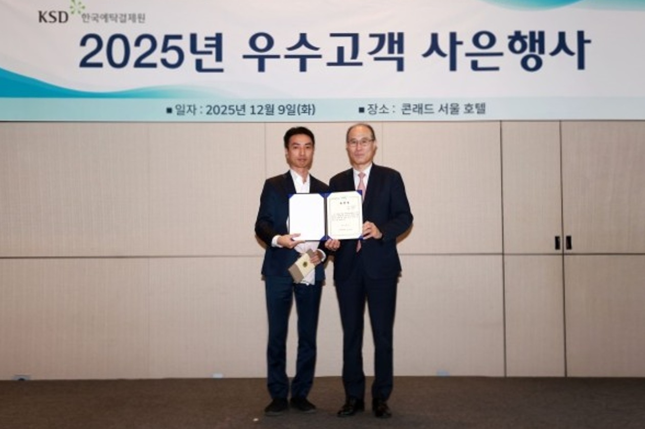 음악투자 플랫폼 뮤직카우(대표)는 한국예탁결제원으로부터 2025년도 우수고객으로 선정됐다고 12일 밝혔다. 예탁결제원은 9일 서울 여의도에서 우수고객을 대상으로 사은행사를 개최했으며, 지속적인 업무 협조와 참여를 통해 자본시장 선진화와 경쟁력 제고에 기여한 고객에게 감사의 뜻을 전달했다.