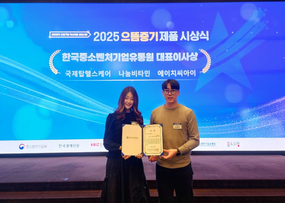 사회복지형 핀테크 기업 ㈜나눔비타민은 한국경제신문이 주관하는 ‘2025 대한민국 으뜸기업 혁신제품(으뜸중기제품)’ 성장기업 부문에 선정돼 오늘 시상식에서 한국중소벤처기업유통원 대표이사상을 받았다. 이번 선정은 나눔비타민이 개발한 급식복지 플랫폼 ‘나비얌’의 기술력과 사회적 가치를 인정받은 결과다.