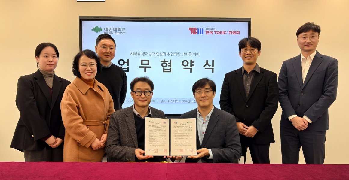 이번 협약식은 대전대학교 30주년 기념관에서 김희준 YBM한국TOEIC위원회 본부장과 문재승 대전대학교 취창업진로역량 개발원장 등 양 기관 관계자 다수가 참석한 가운데 진행됐다. 협약은 재학생들의 취업 경쟁력 강화를 목적으로 체결됐다.