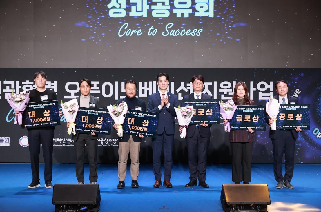 중소벤처기업부(장관 한성숙, 이하 중기부)는 16일 서울 더블유디지에서 노용석 제1차관과 사업 참여 기업 관계자 등 200여 명이 참석한 가운데 2025년 민관협력 오픈이노베이션 성과공유회를 개최하고, 통합경진대회 결선에서 우수 스타트업과 협업 대기업을 선정해 시상했다고 밝혔다.