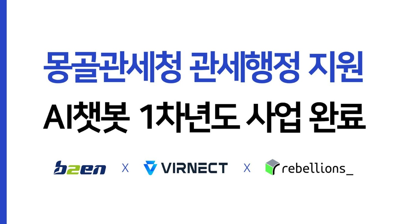 AI·빅데이터 전문기업 비투엔(대표 이창현, 이정훈)이 버넥트, 리벨리온과 컨소시엄을 구성해 몽골 관세행정 디지털 혁신 프로젝트를 성공적으로 완료했다고 23일 밝혔다. 이번 사업은 정보통신산업진흥원(NIPA) 주관 ‘2025 AI-반도체 해외진출지원 사업’의 일환으로, 2년간 단계적으로 진행된다.