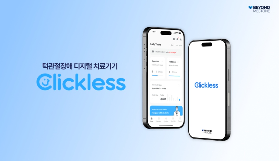 Beyond Medicine (CEO Daehyun Kim), a digital therapeutic device specialist, announced on the 24th that its temporomandibular joint disorder (TMD) treatment and management software, 'Clickless', has received approval as a Class 2 digital medical device from the Ministry of Food and Drug Safety.
