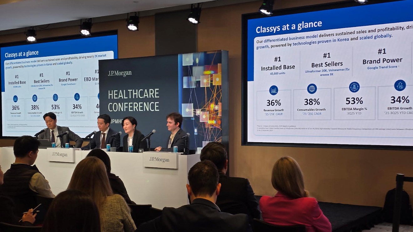 글로벌 메디컬 에스테틱 전문 기업 ㈜클래시스(대표 최윤석)는 세계 최대 제약·바이오 투자 행사인 ‘2026 JP모건 헬스케어 콘퍼런스(JPMHC)’에서 진행된 패널 토론을 마무리하며 글로벌 투자자들로부터 ‘올해 주목해야 할 종목’으로 주목받았다고 15일 밝혔다.
