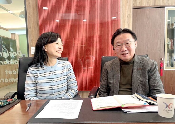インターコムを共に導く石材民代表(左)とチェ・テヨン代表(右)