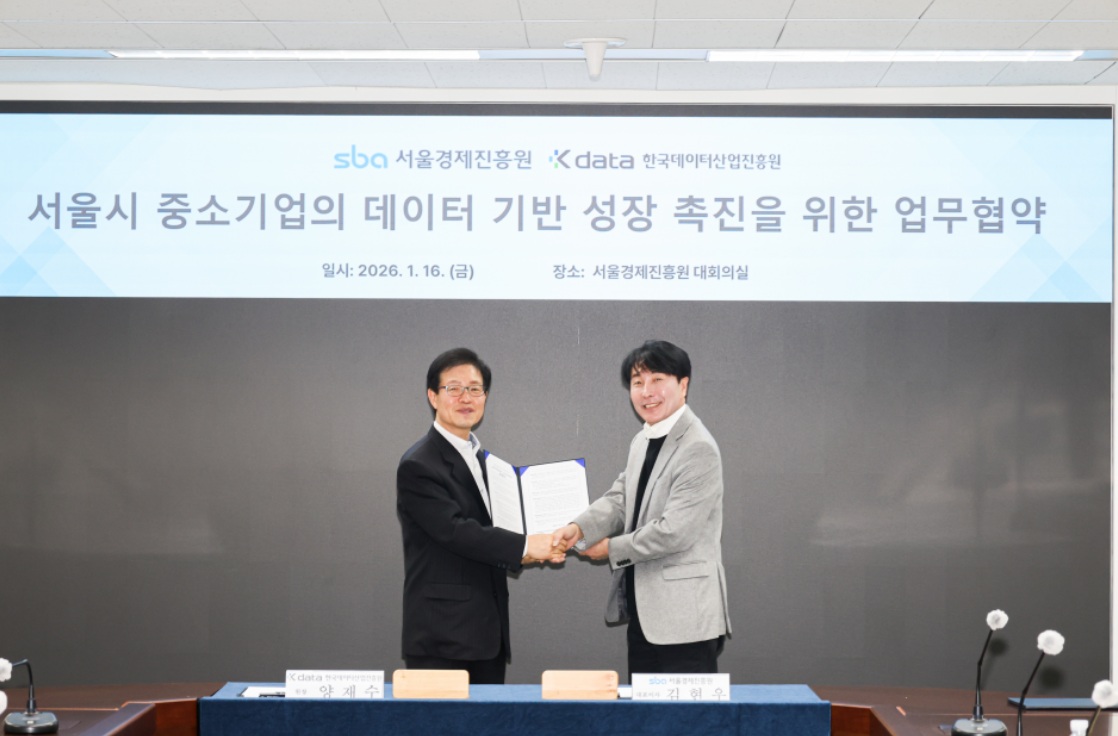 The Seoul Economic Promotion Agency (SBA, CEO Hyunwoo Kim) announced that it signed a business agreement with the Korea Data Industry Promotion Agency (K-DATA), a data specialized agency under the Ministry of Science and ICT, to promote data-based growth of small and medium-sized enterprises (SMEs) in Seoul.