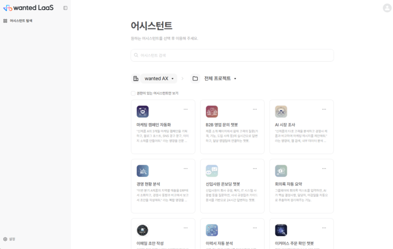 한국관광공사는 맛집 추천, 관광 서비스 개발 등을 구현했고, 경희대학교 경영대학은 2025년 상반기부터 AI를 활용한 정규 과정을 신설하기로 했다. 민간 기업 중 피플레이는 원티드 LaaS를 활용해 하루 24시간 쏟아지는 고객 문의를 AI 챗봇으로 처리하도록 구축했고, 업무 효율이 비약적으로 향상됐다.