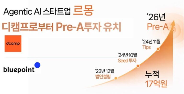 외식업 AI 전문 기업 르몽은 은행권청년창업재단 디캠프와 블루포인트파트너스로부터 총 10억원 규모의 프리 A(Pre-A) 투자를 유치했다고 21일 밝혔다. 이번 투자로 르몽의 누적 투자 유치 금액은 17억원으로 늘었다. 블루포인트파트너스는 시드 라운드에 이어 이번 프리 A 라운드에도 후속 투자자로 참여했다. 르몽은 2023년 설립 이후 자체 개발한 루미니르 AI(Luminir AI) 기술을 기반으로 외식업 특화 AI 서비스를 제공하며 사업을 확장해 왔다. 르몽은 1만5000개 이상의 외식업 소상공인과 함께 롯데GRS(롯데리아), 굽네치킨, 피자헛 등 주요 프랜차이즈를 고객사로 확보하며 국내 외식업 AI 서비스 기업으로 입지를 넓혔다. 설립 1년 만에 흑자 전환에 성공했으며, 2년 연속 흑자를 기록하고 연 3배 이상의 고객 증가율을 보이며 안정적인 성장세를 이어가고 있다. 대표 서비스인 AI 리뷰 관리 솔루션 댓글몽은 국내 외식업 AI 서비스 가운데 다수의 사용자를 확보하고 있다. 프랜차이즈 본사를 대상으로 한 AI 고객관계관리(CRM) 솔루션 댓글몽 비즈(Biz)는 출시 7개월 만에 롯데리아, 본그룹, 피자헛, 굽네치킨 등 20여 개 프랜차이즈 본사를 고객사로 확보하며 빠르게 확산되고 있다. 르몽은 이번 투자금을 활용해 현재 실증사업(PoC)을 진행 중인 종합 마케팅 AI 에이전트 비즈몽 개발을 완료하고 서비스 고도화에 나설 계획이다. 아울러 기술 경쟁력 강화를 위한 핵심 인력 확보도 병행할 예정이다. 비즈몽은 에이전틱 AI 기반으로 개인화 컨설팅, 콘텐츠 자동 생성, 마케팅 채널 등록, 성과 분석 기능을 통합 제공하는 자영업자 및 중소상공인 대상 마케팅 자동화 서비스다. 관련 기사 더 보기 https://www.venturesquare.net/1009694/