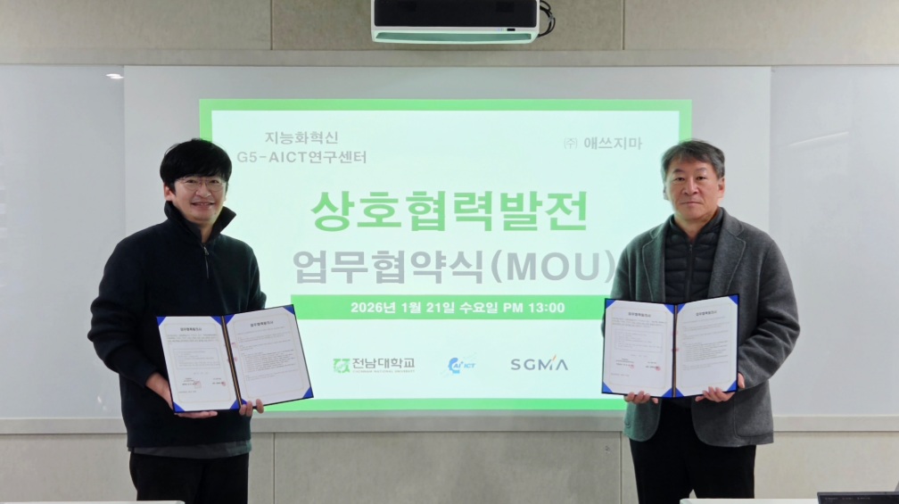 全南大学と(株)愛津島は、技術開発と産業需要基盤の産学協力プロジェクトを中心とした協力体制を構築すると明らかにした。両側は2026年1月21日、全南大学が推進中の地域知能化革新人材養成事業と中小企業契約学科の設置及び運営を連携した業務協力同意書を締結した。