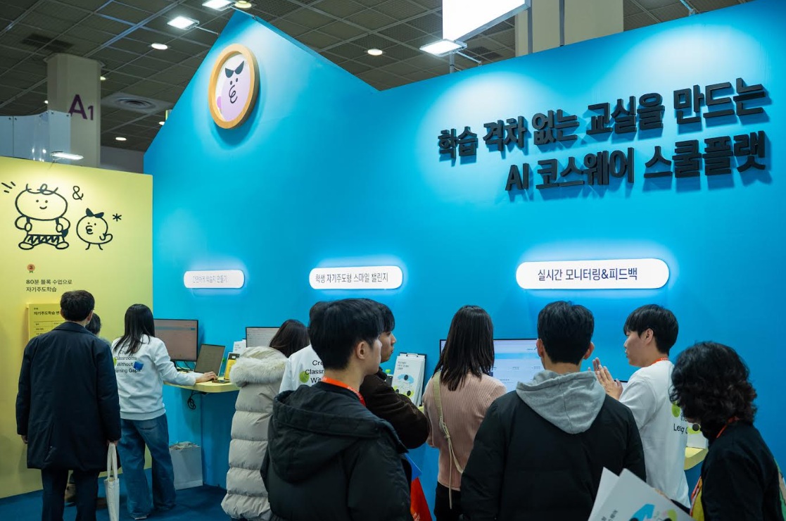 또한 ‘제1회 스쿨플랫 수학 AI 코스웨어 활용 사례 공모전’ 우수작 전시와 프린팅 학습지 체험 공간을 운영했으며, 교사들에게 60일 무료 체험 혜택과 수업 사례 자료를 제공했다.