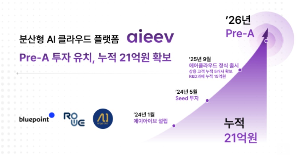 차우진 블루포인트 책임심사역은 “에이아이브는 기술적 허들이 높은 AI 인프라 영역에서 차별화된 기술 경쟁력을 갖춘 팀”이라며, “차세대 AI 인프라 시장을 선도할 핵심 기업으로 성장할 가능성이 크다”고 평가했다.