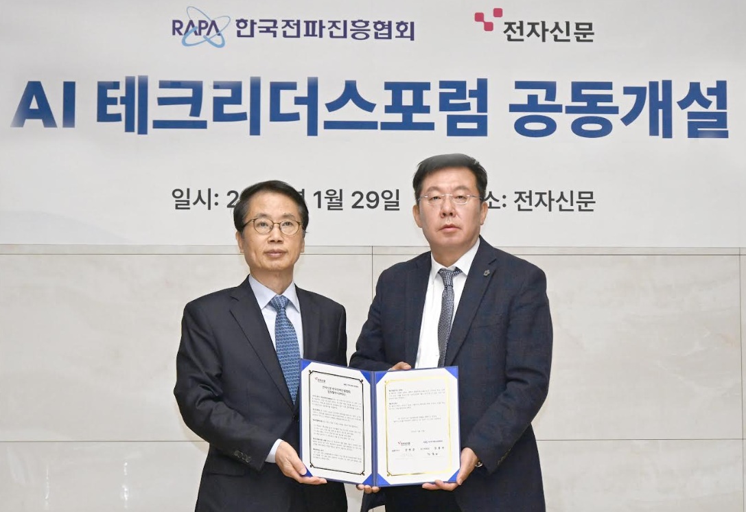 한국전파진흥협회(RAPA)와 전자신문은 29일 서울 서초구 전자신문 본사에서 ‘AI 테크 리더스 포럼’ 공동 개최를 위한 업무협약(MOU)을 체결했다.